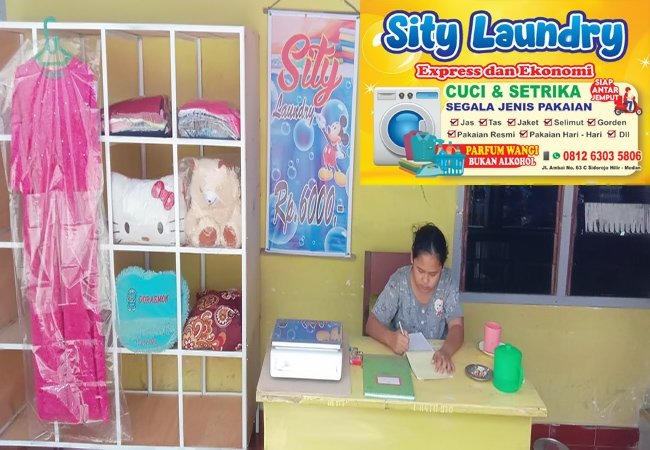 \"Jangan lupa, mampir pakai jasa cuci \'Sity Laundry\' ya, alamatnya di Jalan Ambai No 63C, Kelurahan Sidorejo Hilir, Kecamatan Medan Tembung, Kota Medan,\" tutur Mak Sity.(Pasrah S)